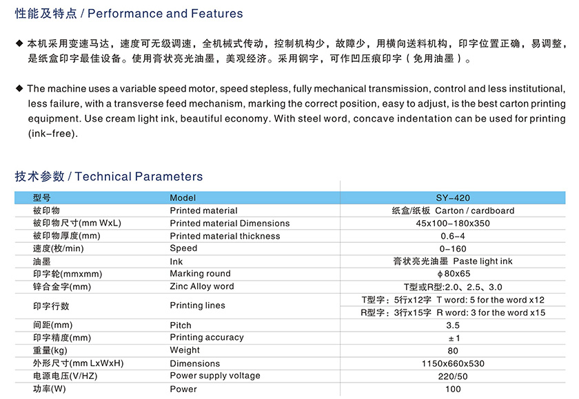 上海煜銳機械制造有限公司是一家專業(yè)生產:折紙機、標示機,鋼印機,色帶打碼機,灌裝機,貼標機,真空機,收縮機,封口機、氣動打碼機等產品的公司,并可為客戶定制專用機型。